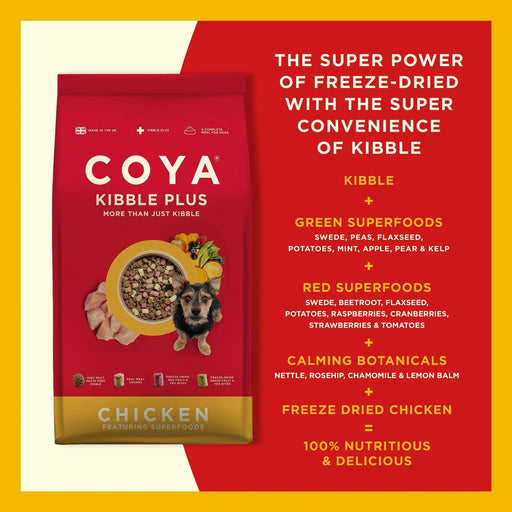 View full detailsCombining a high protein, complete and balanced kibble with freeze-dried chicken and fruit and vegetable pieces.COYA’s Kibble Plus is a unique dog ...
