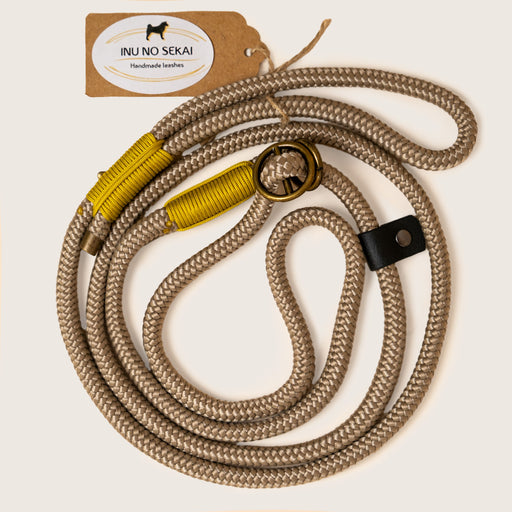 INU NO SEKAIINU NO SEKAI Tan Oyster Yellow Slip Lead - Rope & Antique Brass Resistant, lightweight and easy-care lasso leash for daily walks with your dog...