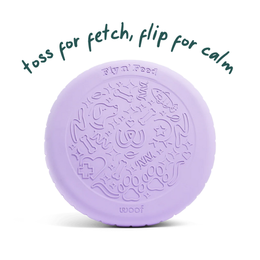 View full detailsWoof Fly 'N' Feed Lavender Dog Frisbee & Lick Mat