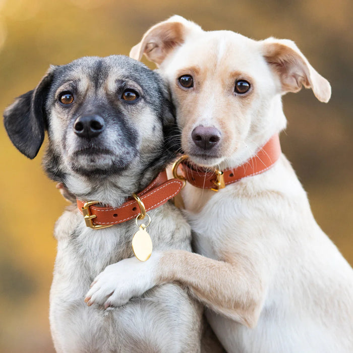 Wide Cognac Leather Dog Collar - Small