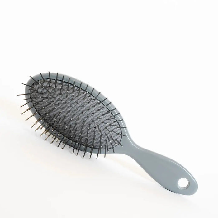Easy & convenient. Made with smooth-end, stainless steel pins. This small-but-mighty brush works great on any coat, long, curly or wavy. Dogs love this brush!