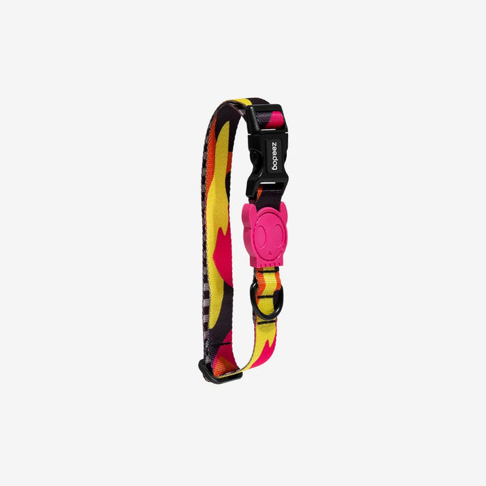 Made of soft and resistant polyester, our collars are smooth on the fur, fully adjustable and come with a buckle built with a 4-point lock system for added safety.